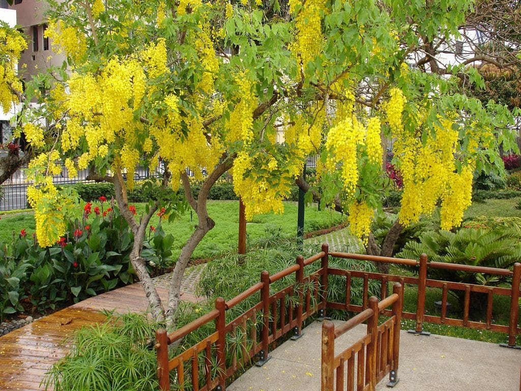 La lluvia de oro se utiliza en gran medida como una planta ornamental en las áreas tropicales y sub-tropicales. Florece a finales de primavera. La floración es se da en gran medida, con árboles que se cubren con flores amarillas, muchas veces casi ninguna hoja termina siendo visible debido a la cantidad de flores. Se desarrolla bien en climas secos. El crecimiento de este árbol es mejor a pleno sol en suelos bien drenados; es relativamente tolerante a la sequía y poco tolerante a la sal. Puede tolerar breves heladas ligeras, pero puede llegar a ser dañado si el frío persiste. Se pueden presentar cosas como moho o manchas de las hojas, especialmente durante la segunda mitad de la temporada de crecimiento. El árbol florece mejor cuando hay una diferencia notable entre las temperaturas de verano e invierno.